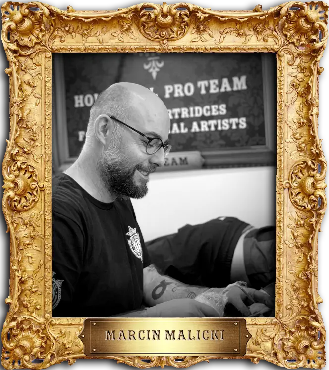 Marcin Malicki is a master of linework as well as black and grey and cover ups too! Marcin has also toured the USA with our super talented pro team. He always has a smile on his face and so do all his clients!